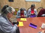 FOTO 1 TERAPIA OCUPACIONAL; Manualidades: elaboración de billeteras, se trabajó en fijación ocular, pinzas y motricidad fina.