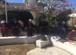 FOTO 3 TERAPIA FíSICA; ejercicios de fortalecimiento muscular en miembros inferiores y entrenamiento de equilibrio con ula-ula.