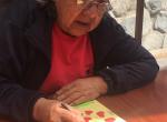 Persona Adulta Mayor elabora una tarjeta por el Día del Amor y de la Amistad, actividad que fortalece vínculos afectivos y a su vez trabaja la motricidad fina.