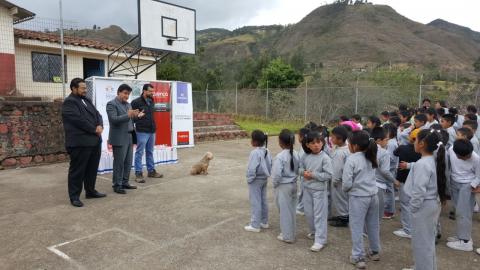 Entrega de kits de aseo para los niños de la escuela Fausto Ricardo Chacón en Quingeo
