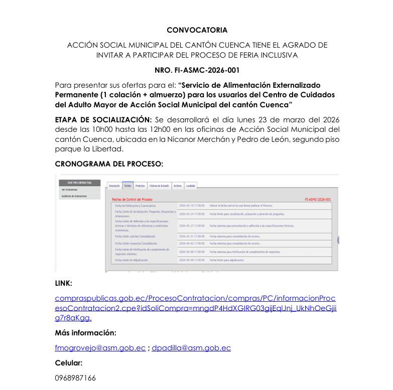ACCIÓN SOCIAL MUNICIPAL DEL CANTÓN CUENCA TIENE EL AGRADO DE INVITAR A PARTICIPAR DEL PROCESO DE FERIA INCLUSIVA