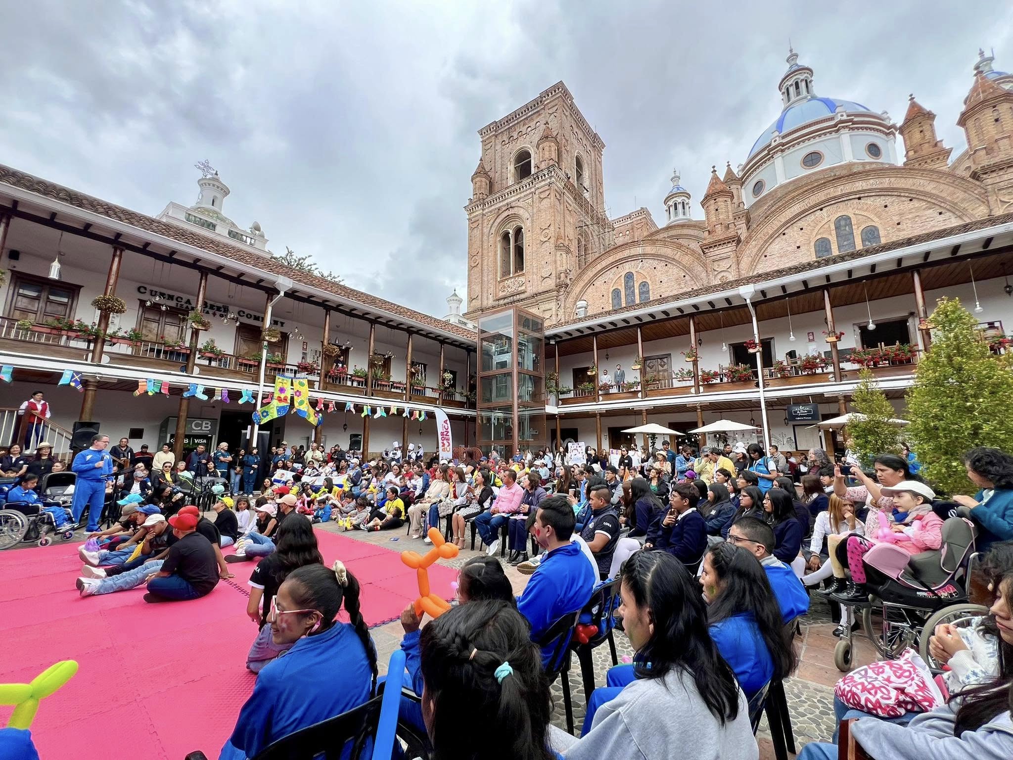 03/21/2025UN ÉXITO FUE LA SEGUNDA EDICIÓN DEL EVENTO "EL AMOR NO CUENTA CROMOSOMAS" DE ACCIÓN SOCIAL MUNICIPALLa Alcaldía de Cuenca con Acción Social Municipal, realizaron con éxito la segunda edición del evento: “El Amor No Cuenta Cromosomas”, una jornada llena de alegría y conciencia social en el Seminario San Luis. Más de 300 personas se unieron a esta celebración que visibiliza la importancia de la inclusión de las personas con Síndrome de Down. Entre los asistentes, destacaron representantes de diversas unidades educativas como: Herlinda Toral, Bell Academy, NOVA, Mundo sin Barreras, Olimpiadas Especiales, Instituto de Parálisis Cerebral del Azuay (IPCA), Fundación Lumbrella quienes participaron activamente en el evento dinámico y enriquecedor. El evento contó con una variedad de actividades artísticas y recreativas. El grupo de danza folclórica Marka Wayra ofreció una presentación llena de tradición, mientras que el Circo Social llevó sonrisas con su espectáculo circense. Además, la Unidad del Centro de Discapacidad Guerreros por la Inclusión deslumbró con su participación en danza, y todos disfrutaron de la música en vivo con la banda de la Fundación Mundo sin Barreras. Cabe resaltar que el Centro de Discapacidades brinda atención a 450 personas con discapacidad y de ellas el 43% tiene Síndrome de Down. “Cuenca es un destino turístico, pero también debe ser un espacio inclusivo donde todos se sientan bien. Como dice nuestro Alcalde, debemos trabajar con amor, con amor a Cuenca y con amor hacia nuestros beneficiarios”, destacó Marisol Peñaloza, alcaldesa subrogante de Cuenca. Como parte de la conmemoración, la ciudad se vistió con la campaña denominada “El Amor No Cuenta Cromosomas” y usando medias disparejas, símbolo mundial de la inclusión. Las calles Padre Aguirre, la Plaza de Las Flores y la Calle Santa Ana fueron decoradas con más de 1.500 medias coloridas, invitando a los ciudadanos a tomarse fotografías y compartirlas en redes sociales con el hashtag #ElAmorNoCuentaCromosomas, promoviendo así una sociedad más empática e inclusiva.